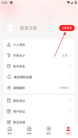 2、在個人中心頁面,點擊立即登錄可進入登錄操作頁面。