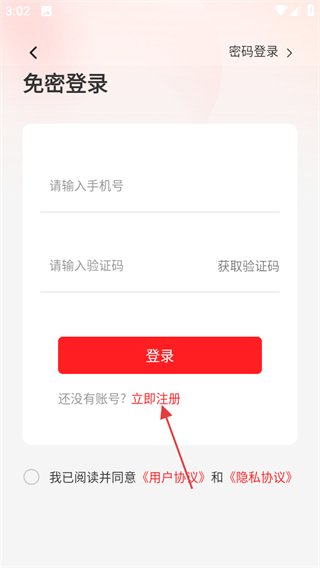 3、在登錄頁面,點擊立即注冊可進入注冊操作頁面。