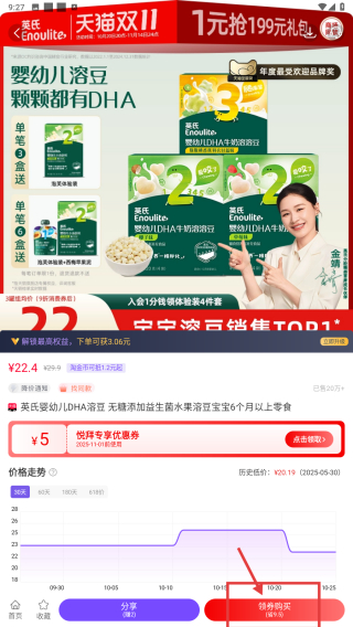 4、在商品詳情頁,點(diǎn)擊領(lǐng)券購買按鈕,完成該商品的購買操作。