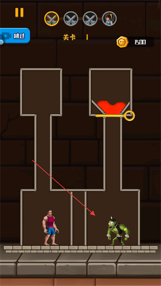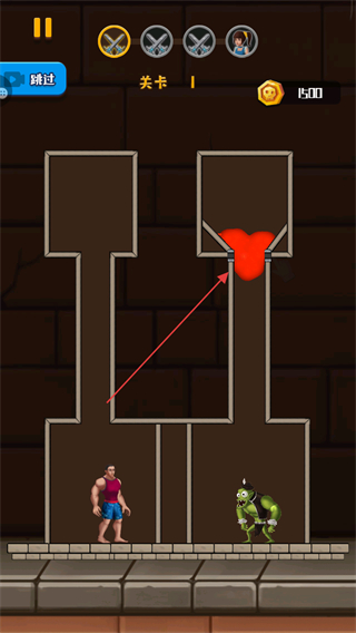 2、操控紅色液體流動,使其流向怪物區(qū)域,利用液體消滅怪物。