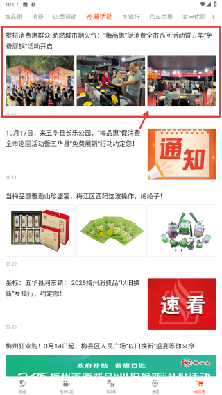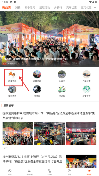 2、在梅品惠頁面,點擊四季活動分類,瀏覽巡展活動新聞列表。