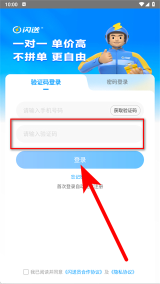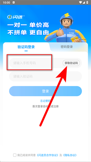 2、在驗證碼登錄頁面,輸入手機號碼,點擊獲取驗證碼。