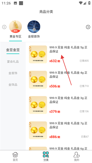 2、在商品分類(lèi)頁(yè)面,點(diǎn)擊心儀商品可進(jìn)入商品詳情頁(yè)面。