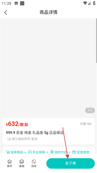 3、在商品詳情頁(yè)面,點(diǎn)擊去下單可完成商品下單操作。