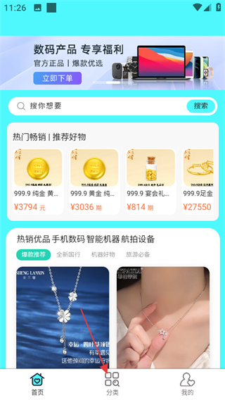 1、打開(kāi)品舟分期商城,點(diǎn)擊頁(yè)面底部分類(lèi),可進(jìn)入商品分類(lèi)頁(yè)面。