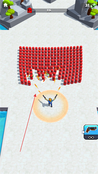 突突沖鋒隊無限鈔票版是一款以關(guān)卡模式為核心的治愈解壓休閑作品,關(guān)卡難度隨進程逐步提升,敵人數(shù)量與強度也隨之增加,擊殺敵人可積攢大招能量,積滿后松開操作鍵就能一波消滅大范圍敵人,同時內(nèi)置服裝系統(tǒng)、寵物系統(tǒng)與超能力玩法,在簡化射擊操作的基礎(chǔ)上,豐富了養(yǎng)成與戰(zhàn)斗元素,既保留掃射解壓的核心樂趣,又增添了玩法層次感。