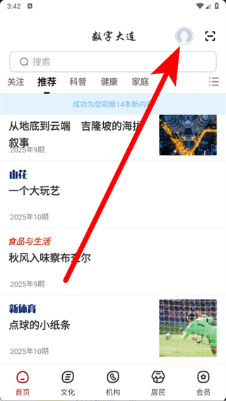 1、打開數(shù)字大連,點擊頁面右上角的登錄入口,進入個人中心頁面。