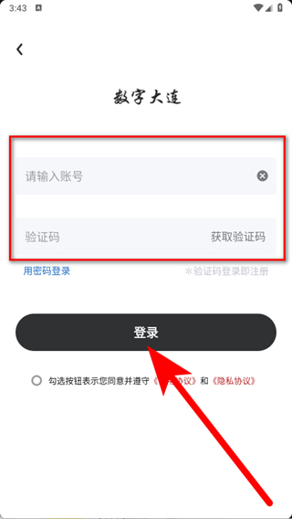 4、在驗證碼登錄頁面,輸入賬號,點擊獲取驗證碼,輸入后,點擊登錄按鈕,完成賬號登錄操作。