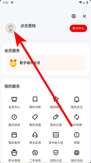 2、在個人中心頁面,點擊點擊登陸區(qū)域,進入賬號登錄界面。