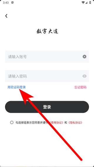 3、在登錄界面,點擊用驗證碼登錄選項,進入驗證碼登錄頁面。