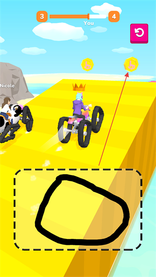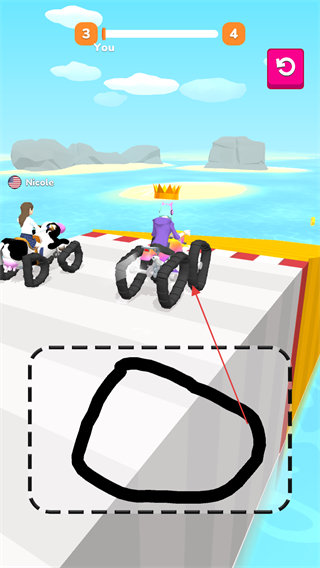 1、繪制圖形生成載具,駕駛其在賽道行駛,超越對手Nicolo,爭奪領(lǐng)先位置。