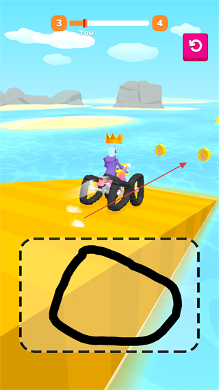 2、駕駛載具在黃色賽道收集金幣,同時(shí)保持行駛穩(wěn)定,拉開與對手的差距。