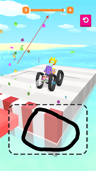4、駕駛載具到達(dá)終點(diǎn),推動進(jìn)度條到4,完成關(guān)卡,獲得勝利。