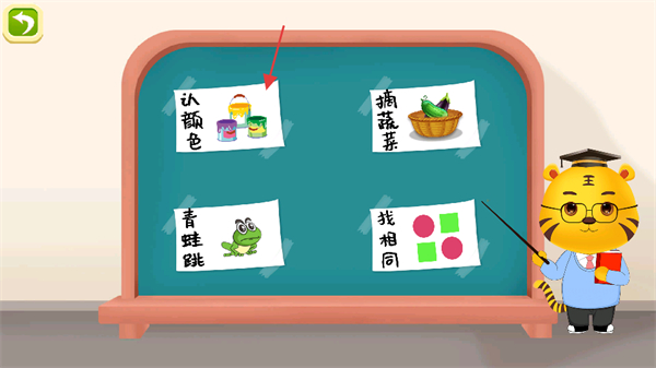 2、在學習頁面,點擊認顏色可進入認顏色的具體學習環(huán)節(jié)。