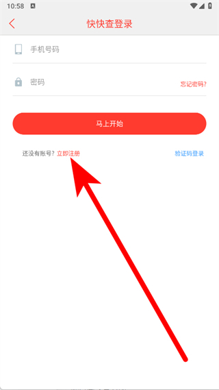3、在登錄界面,點擊立即注冊,進入手機號注冊頁面。