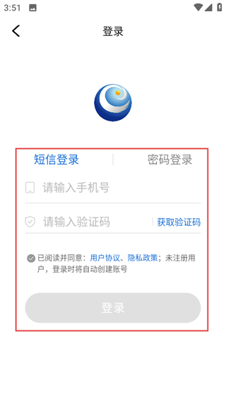 3、在登錄頁(yè)面,輸入信息,同意協(xié)議后點(diǎn)擊登錄可完成賬號(hào)登錄。