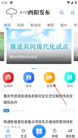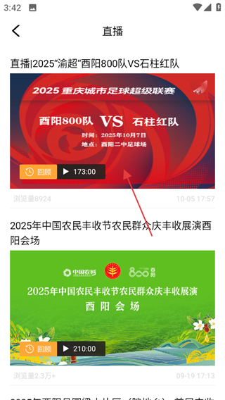 2、在酉陽內(nèi)容頁面,點擊直播可進(jìn)入直播列表頁面。