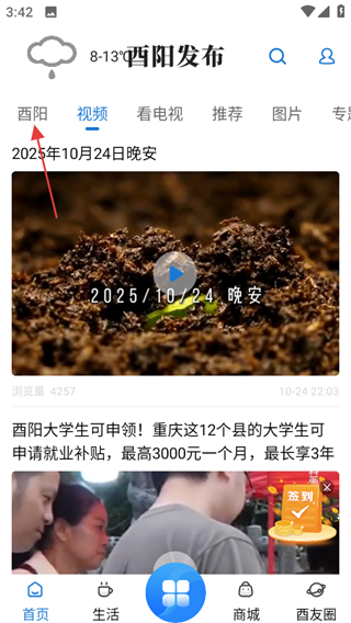 1、打開酉陽發(fā)布,點擊酉陽分類,可進(jìn)入酉陽相關(guān)內(nèi)容頁面。