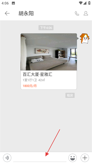 4、在聊天頁(yè)面,可輸入內(nèi)容與房東溝通租房相關(guān)事宜。