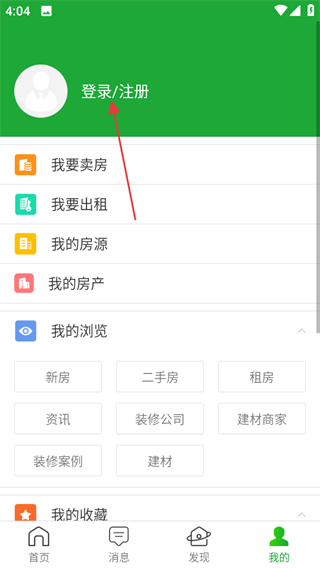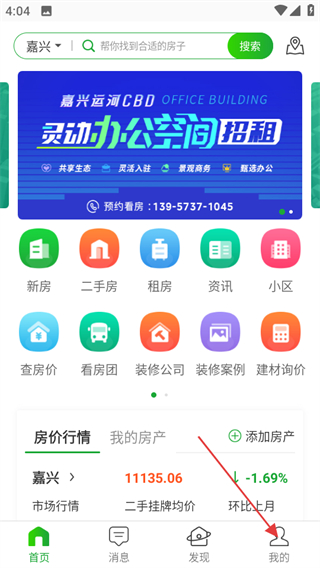 1、打開房產(chǎn)超市,點(diǎn)擊頁面右下角我的,可進(jìn)入個(gè)人中心頁面。