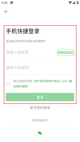 3、在登錄選擇頁面,輸入信息,同意協(xié)議后點(diǎn)擊登錄可完成賬號(hào)登錄。