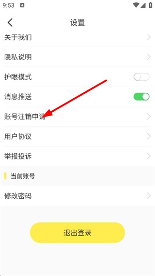 3、在設(shè)置頁面,點(diǎn)擊賬號(hào)注銷申請(qǐng),進(jìn)入賬號(hào)注銷申請(qǐng)頁面。