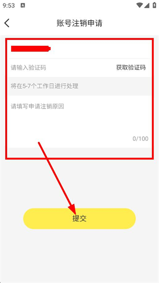 4、在賬號(hào)注銷申請(qǐng)頁面,輸入驗(yàn)證碼,填寫注銷原因后點(diǎn)擊提交,完成賬號(hào)注銷申請(qǐng)。