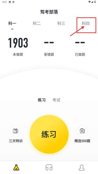 1、打開駕考類應(yīng)用,點擊科四選項,進(jìn)入科四練習(xí)頁面。