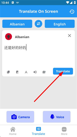 1、在APP首頁(yè),點(diǎn)擊底部Translate,進(jìn)入翻譯頁(yè)面。