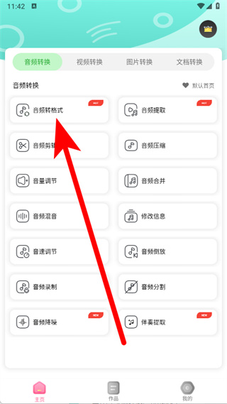 1、打開格式轉(zhuǎn)換寶,在音頻轉(zhuǎn)換分類下,點(diǎn)擊音頻轉(zhuǎn)格式功能,進(jìn)入本地音樂選擇頁面。