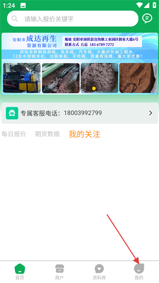 1、打開金屬寶,點(diǎn)擊頁面右下角我的,可進(jìn)入個(gè)人中心頁面。