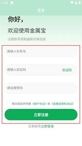 4、在注冊(cè)頁面,輸入信息,同意協(xié)議后點(diǎn)擊立即注冊(cè)可完成賬號(hào)注冊(cè)。