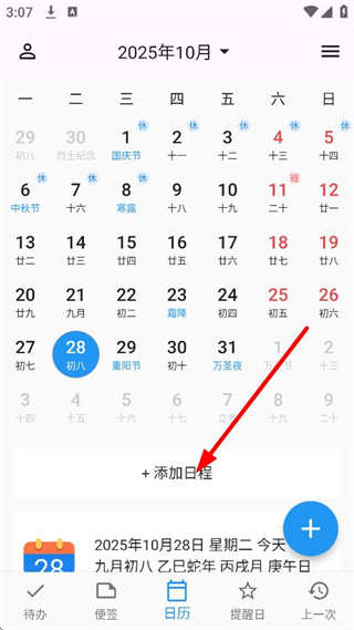 2、隨后用戶可以在日歷的首頁,點(diǎn)擊+添加日程,進(jìn)入新建日程頁面。