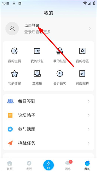 2、在個人中心頁面,點擊點擊登錄,進入登錄選擇頁面。