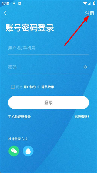 3、在登錄選擇頁面,點擊注冊,進入注冊新賬號頁面。