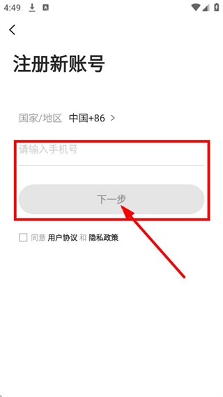 4、在注冊新賬號頁面,輸入手機號后點擊下一步,完成賬號注冊流程。