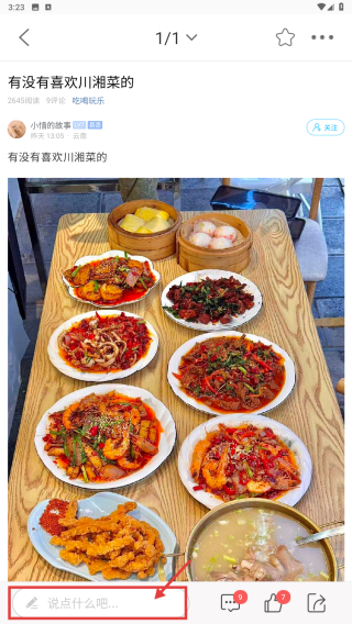 4、在帖子詳情頁,點擊說點什么吧...輸入框,即可參與帖子互動。