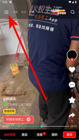1、打開火蟻生活,點擊首頁左上角的菜單按鈕,展開功能列表。