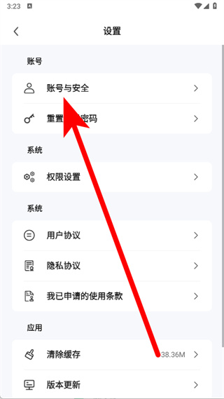 3、在設(shè)置頁面中點擊賬號與安全,進入賬號與安全頁面。