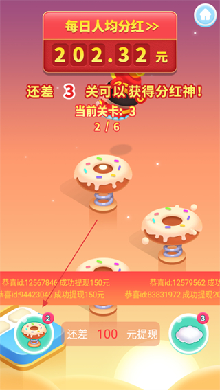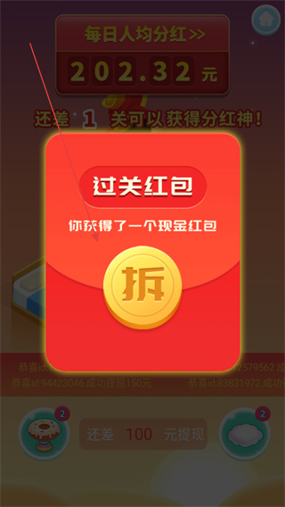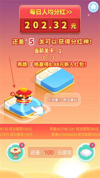 4、每跳到指定的方塊物品數(shù)量,將會(huì)獲得一個(gè)過(guò)關(guān)紅包。