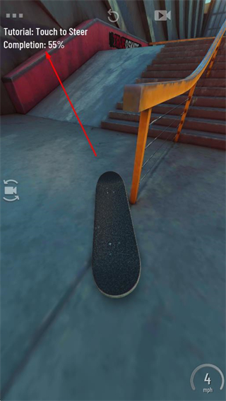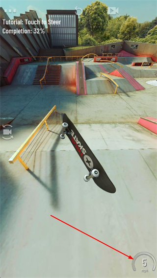 2、在滑板場(chǎng)景中,觸摸屏幕控制滑板的方向和速度,右下角的速度顯示可直觀了解滑板運(yùn)動(dòng)狀態(tài)。
