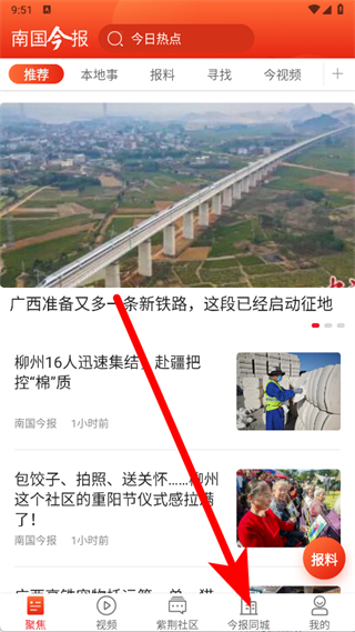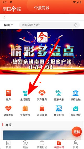 1、打開南國今報,點擊底部導(dǎo)航欄今報同城,進入同城服務(wù)頁面。
