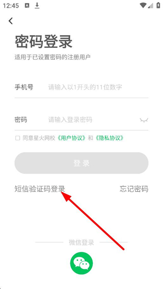 3、在登錄方式選擇頁面,點(diǎn)擊短信驗(yàn)證碼登錄,進(jìn)入驗(yàn)證碼登錄/注冊頁面。