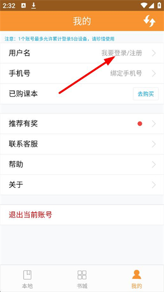 2、在個(gè)人頁(yè)面,點(diǎn)擊我要登錄/注冊(cè),進(jìn)入登錄頁(yè)面。
