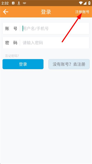 3、在登錄頁(yè)面,點(diǎn)擊注冊(cè)賬號(hào),進(jìn)入注冊(cè)頁(yè)面。