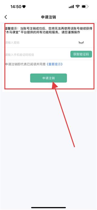 4、輸入密碼、手機(jī)驗(yàn)證碼,點(diǎn)擊申請(qǐng)注銷,完成賬號(hào)注銷操作。