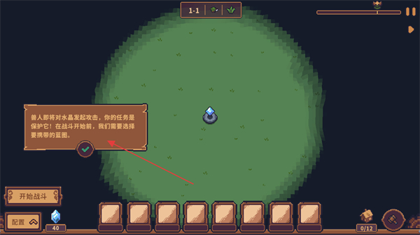 1、閱讀提示,明確任務(wù)是保護水晶,選擇要攜帶的道具。