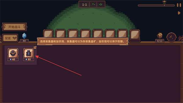 2、在配置界面選擇采集器和地炮,采集器用于收集晶礦,地炮用于防御。