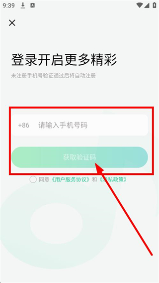 3、在登錄頁面,輸入手機(jī)號碼,點擊獲取驗證碼。