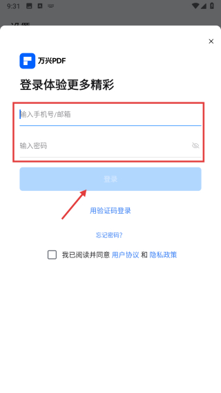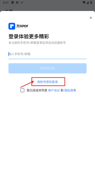 4、在賬號密碼登錄頁面,輸入手機號/郵箱和密碼,點擊登錄按鈕,完成賬號登錄操作。